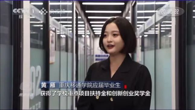 比如黄雁,移通2022届毕业生,在校期间积极参加完满教育各类活动,作为四届一任校学生会主席,牵头策划开展了创意·科技文化节、“三江之城”城市生存挑战赛,后来又跳出舒适区选择创业,谁能想到毕业两年后,她的创业经历被央视《焦点访谈》专访,与同学一起合伙创立的公司也可以完成年产值千万的业绩。