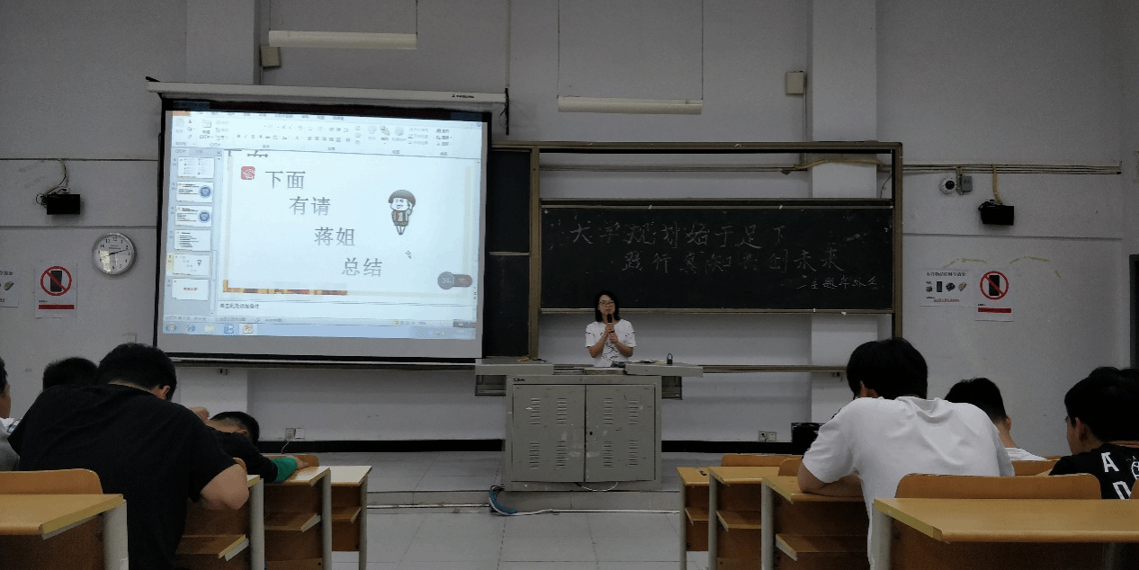 本次年级会的最后,辅导员蒋益老师向大家分享了她的大学生活,以及她的大学规划。蒋益老师谈到,作为一名合格的大学生,要积极响应关于党的十九大关于“倡导创新文化,强化知识产权的创造、运用、保护”的号召:对于我校开展的“创新创业”有关课程或学生组织,都是大学生应该积极响应的“创新精神”。蒋益老师还着重强调了以及对于我校大学生毕业标准中,每个人都需要明确自己的定位,明白考取对应的证书、遵循校规校训的重要性。同时,在最后蒋老师也向同学们表达了作为一名大学生需要“不忘初心”,做最真实的自己,做最好的自己。