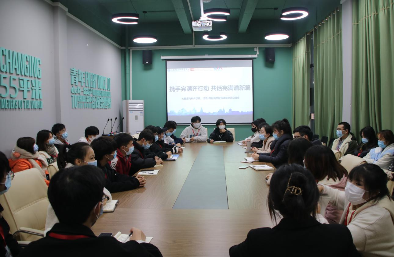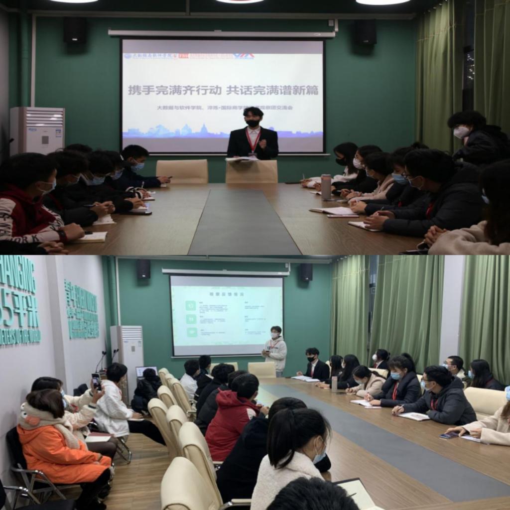 为扎实推进完满教育活动质量提升工作,能够客观公正评价完满教育工作开展成效,全方位做好完满教育“焕新提质”年度关键词建设,进一步优化完满观察团运作机制。于2021年11月19日下午14:30大数据与软件学院联合淬炼·国际商学院完满观察团在花果书院2楼会议室举办以“携手完满齐行动 共话完满谱新篇”为主题的完满观察团分享交流会。大数据与软件学院彭崇清和徐瑞成老师、淬炼·国际商学院张丹老师以及两院观察团成员参与此次两院观察团工作分享交流会,就管理机制、工作内容以及运作模式等相关工作进行热烈探讨。