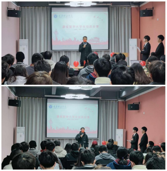 活动开展第三部分,邀请两位退伍复学大学生来给大家分享他们的入伍经历,让大家对自己设定清晰的定位,明白自身的优缺点,清楚努力的方向和目标,更是需要秉持信心和决心向前奋进。
