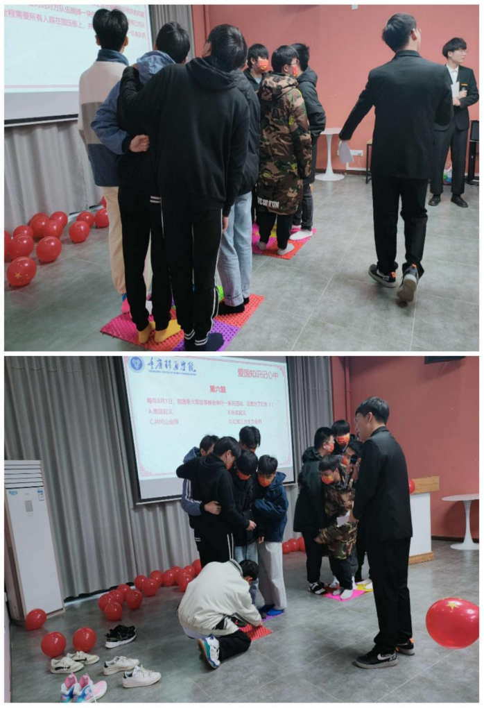 活动开展下一环节,邀请两组分别以包含五名成员的形式参加游戏,进行爱国知识问题抢答,体现出团队精神,团队力量。