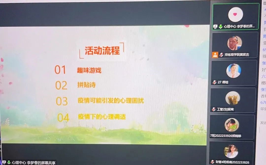 3、“疫情下的情绪调节”——淬炼•国际商学院青衿蜕变营开营仪式暨健康第一讲心理团辅公开课