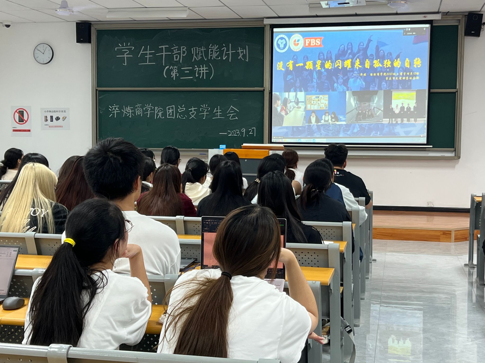不积跬步,无以至千里;不积小流,无以成江海。为了给新生班委和学生组织干事们在办公方面的能力打下坚实的基础,淬炼商学院团总支学生副书记王瑜书记以常用技巧为切面,对PPT和Excel的基础知识进行讲解。从PPT的主题风格、答辩PPT的注意事项、PPT的logo使用以及Excel的使用基础等多个方面开展培训,清晰易懂、简明扼要向各位新生班委以及学生组织干事直观有效地展示了办公软件基础知识,相信大家在王瑜副书记的带领下都能够加深对PPT和Excel制作的认识,并将其所介绍的基础功能运用在日后的学习工作中。