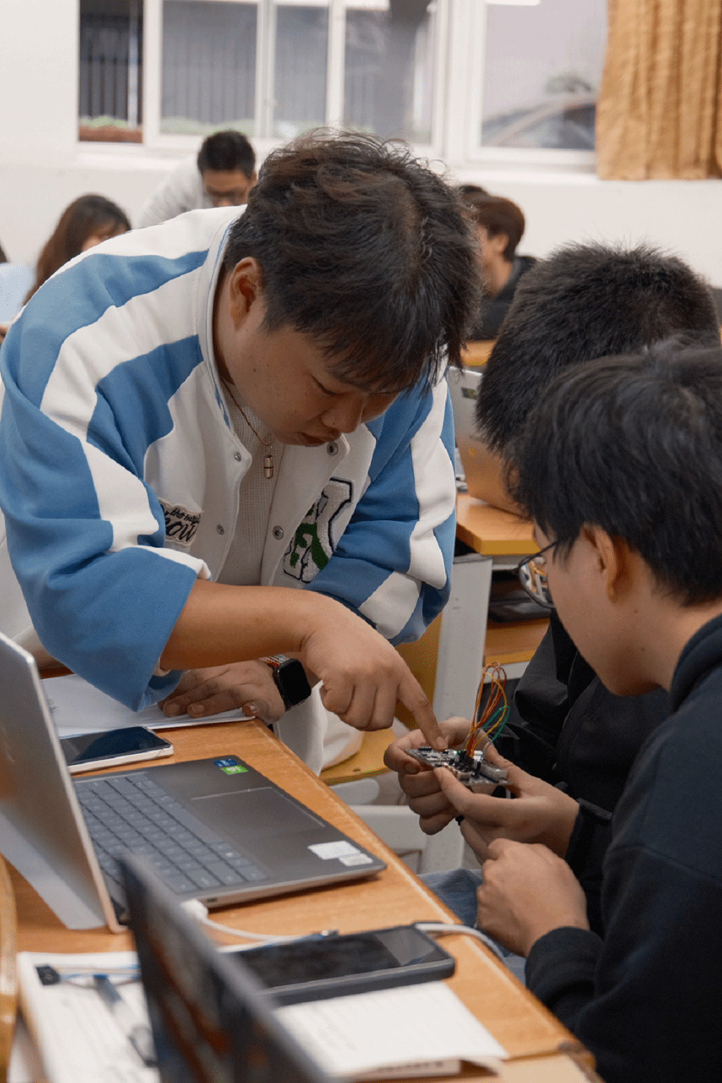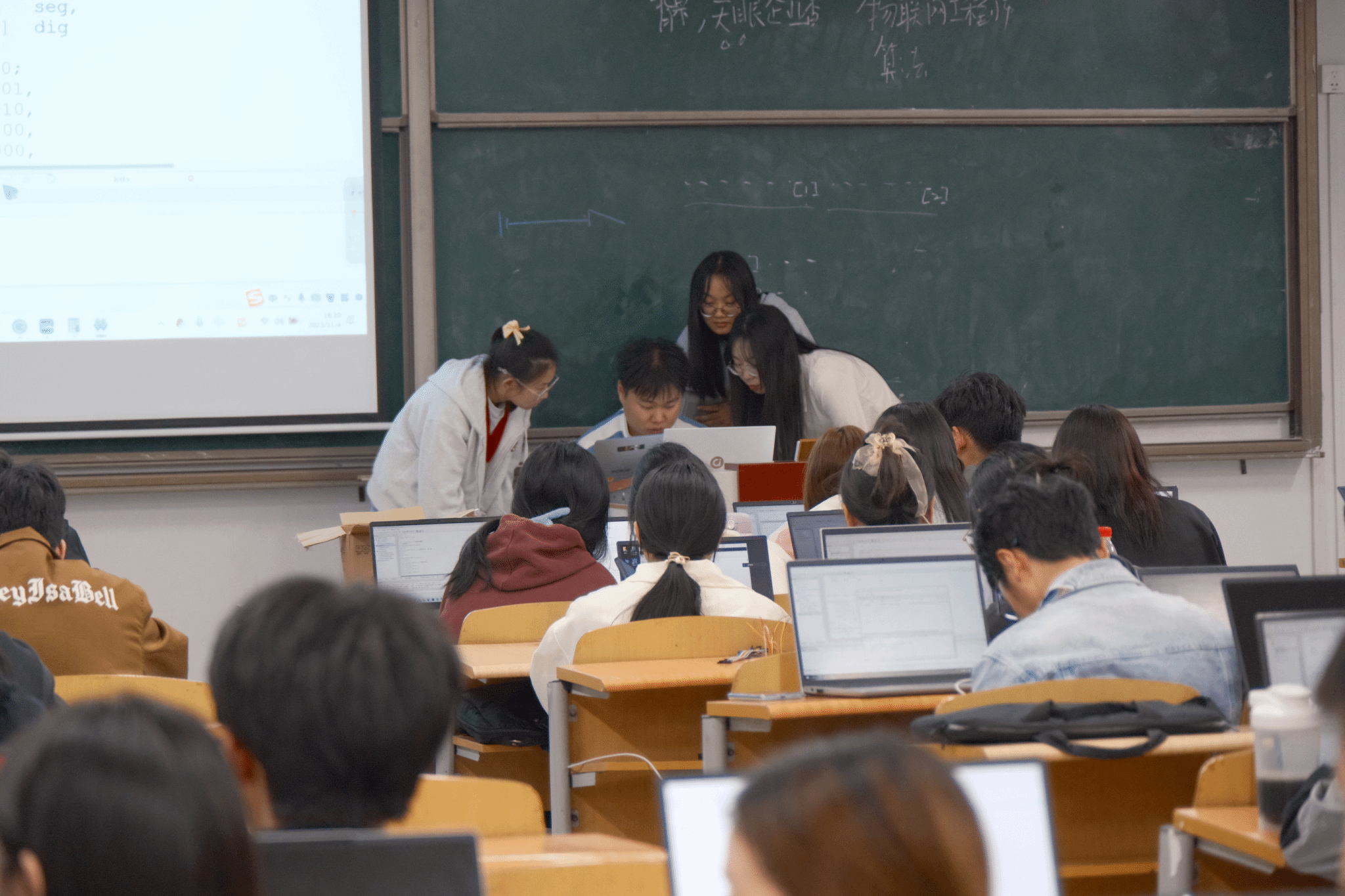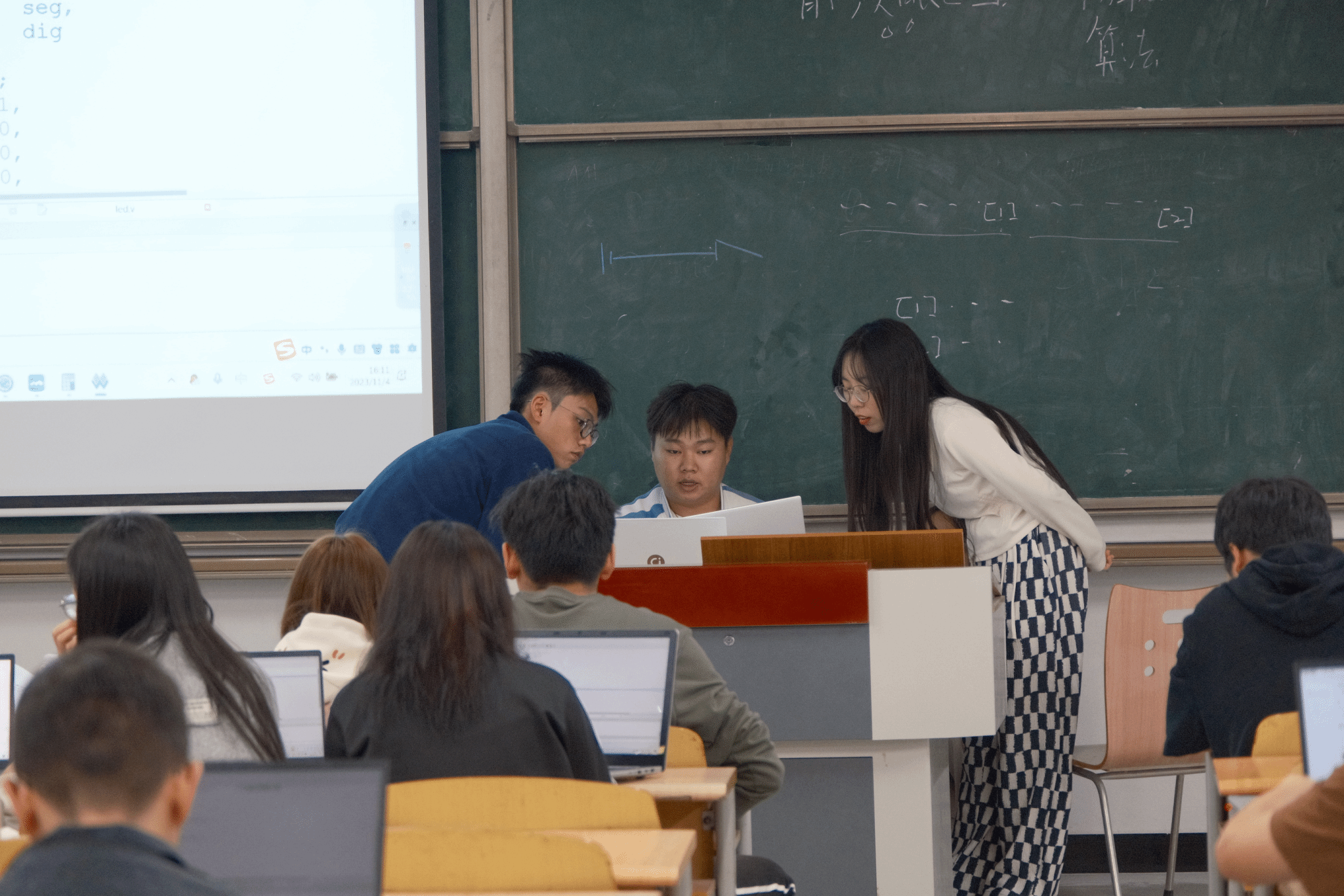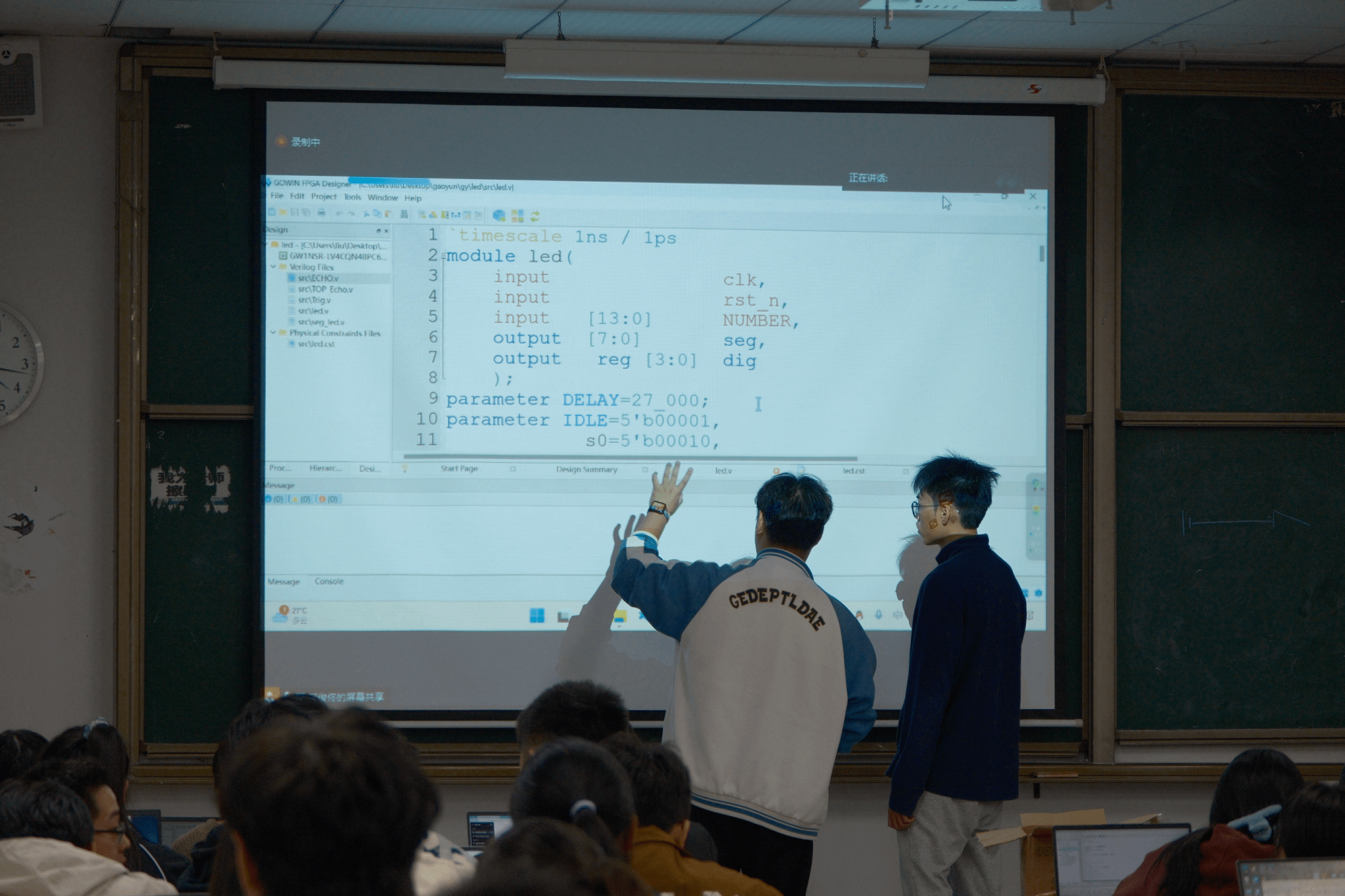 本周的培训过程,不仅是知识的传递,更是思维的碰撞。4101课堂上,学生们围坐在柳老师周围积极讨论,围绕FPGA设计中遇到的挑战和疑惑进行交流,热切地探究技术难题,现场氛围活跃,思维火花四溅。柳老师对于每一个提问都不厌其烦地解答,其耐心和专业度赢得了学生们的一致认可。