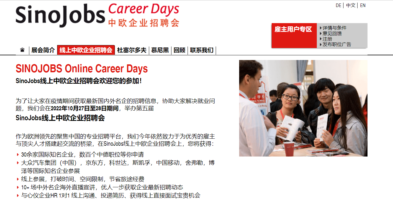 进一步探索人才输送模式,携手海外招聘平台sinojobs中欧企业招聘,10月28日-29日,德国工程学院开展了秋季海外线上专场招聘会,本次招聘会共计30余家企业参加,校内海外学生通过线下和网络形式共同参加,提供了300余个优秀岗位和机会。为我院海外学生和即将赴德学生提供更多精准化、多样化的岗位,提供多元化近距离接触招聘的平台,与用人单位搭建互利合作聚力共赢的交流平台,建立更深入的合作关系,真正实现企业与我校学生互利共赢局面,为助推我校毕业生积累更多求职经验,获得更多就业机会,切实落实毕业生就业工作。