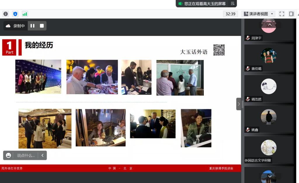 高大玉老师丰富的职业经历和精彩的职场见闻很快就吸引了同学们的关注。她作为一名拥有多年经验的翻译,接触过众多政经要人、行业代表性专家、企业高管等,因此可以针对我校中德合作办学项目各个专业的职业发展给予各方面的建议。