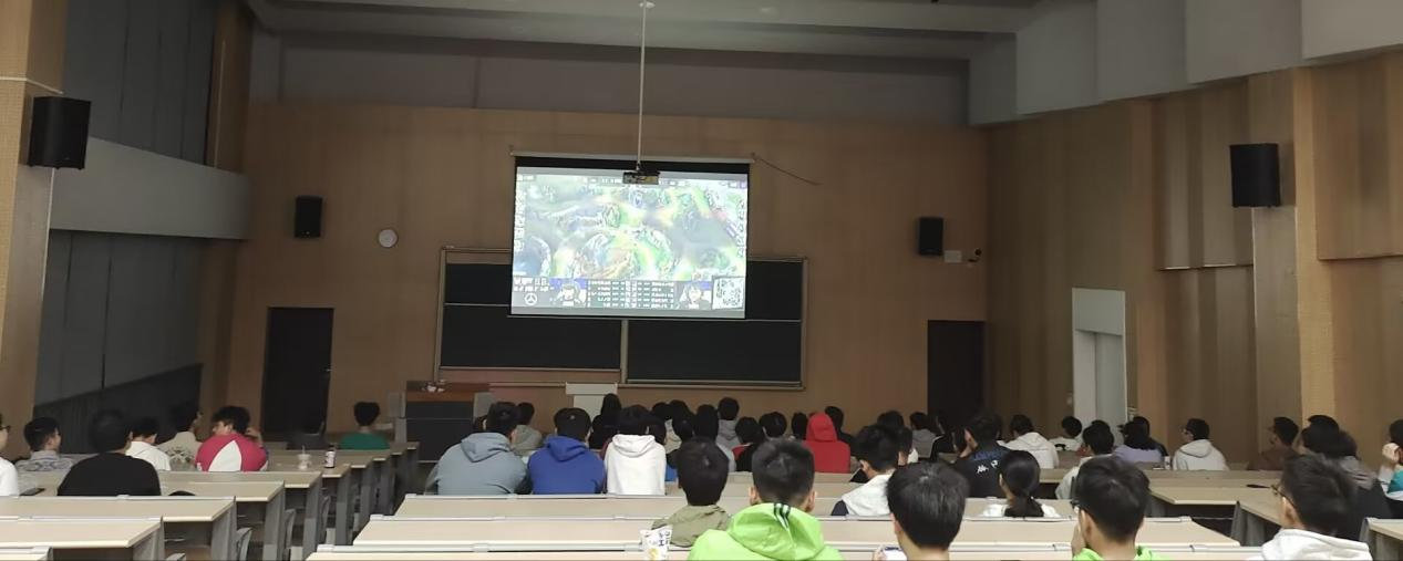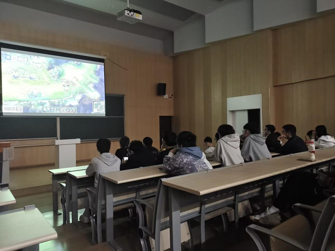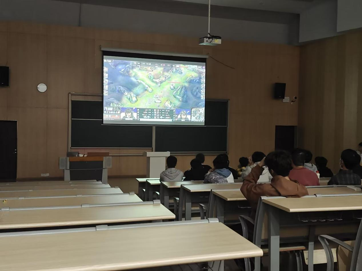 电子竞技,永远热爱,永远理想,也永远充满遗憾。少年用一颗赤诚的心,面对遗憾也永远保持热爱,对电子竞技的信仰,让电竞人在竞技世界中敢打敢拼,创造辉煌。为了丰富同学们课余生活,唤醒对竞技的热爱,始终保持积极向上的心面对生活,GFD电竞社于10月28日早上在玉堂书院阶梯教室组织开展观看英雄联盟比赛。