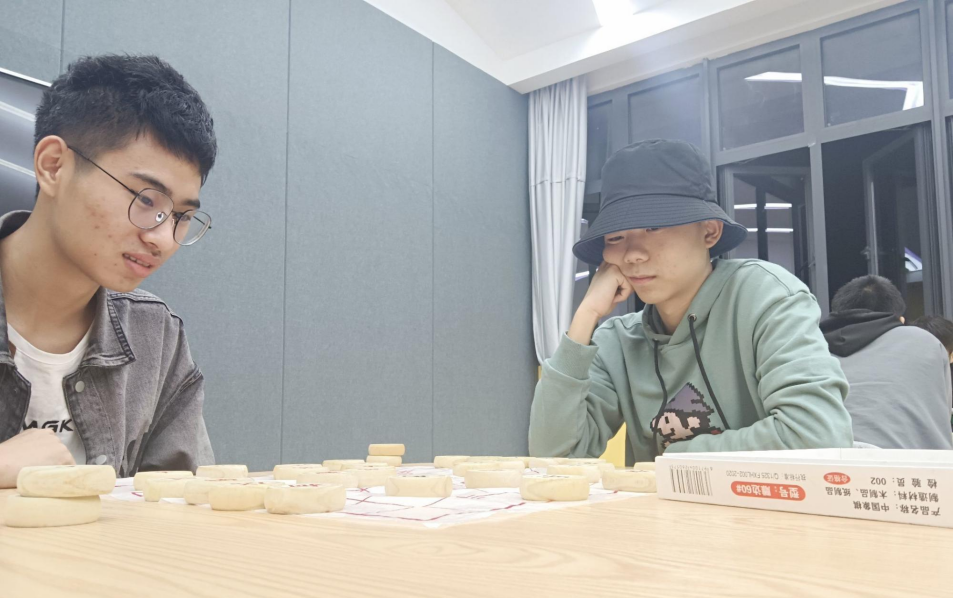 在周赛过程中,各位参赛选手热情高涨,斗志昂扬。在工作人员确定对手和轮次后,选手们便在河界双边展开厮杀。现场绵绵不绝的响起棋子与桌面碰撞的声音。棋到中盘,节奏便慢了下来,选手举棋不定,甚是谨慎,有时思量许久才落子,比起序盘,中盘的对局更像是暴风雨来临前的宁静。果不其然,在第一声吃子声响起,便打开了终盘的序幕,一个接一个的棋子被提起,瞬间满满的棋盘变得空旷起来,两边或是只剩寥寥无几的车、马、炮;或是无奈的进兵飞象,最终也只能被绝杀认负。如此场景正应了那句:做事就像下象棋,必须得走一步看两步想三步,未雨绸缪,运筹帷幄,成竹在胸,才能有将死对方的把握。
