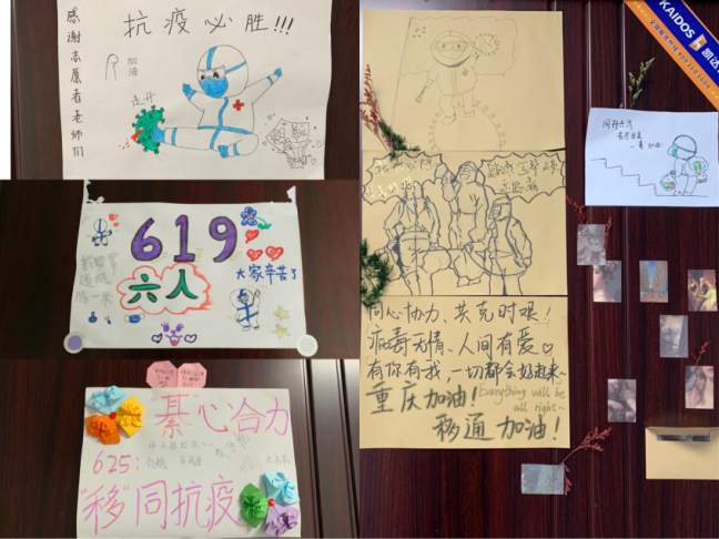 作为一名合格的移通er,要有一双善于发现‘美’的眼睛。疫情当前,同学们拿起手机,记录下了志愿者老师们辛勤工作、可爱的身影以及移通学子寝室门口为志愿者们加油打气的手绘图画。这是属于移通人特有的浪漫瞬间。