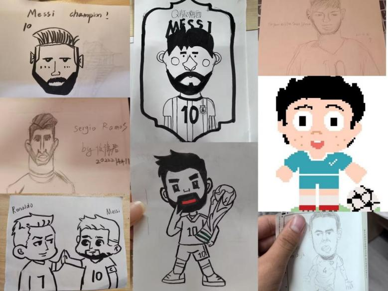 2022卡塔尔世界杯即将到来,足球协会以卡塔尔世界杯为载体,以球会友,用自己的语言去书写自己爱好,用自己的绘画去表达自己的兴趣,同学们将心中的激动与支持转变为纸上所描绘出自己喜爱的球星和热爱的足球。
