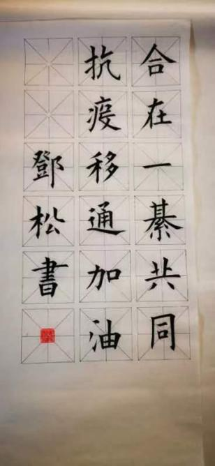 疫情无情,移通有情。苍劲有力、一笔而下,饱含属于移通er的坚毅与果断。移通学子虽不能奔赴前线抗疫,但可以拿起手中的笔,为志愿者们写下最真挚的祈福,表达最诚挚的祝愿。