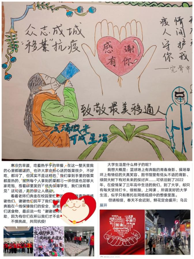 通过本次活动,同学们对“逆行”志愿者有了更深刻的感受。我在书院读大学通讯社也希望同学们可以看到生活还是有希望,日子并不无聊,要以积极地心态面对疫情,要戮力同心,相信胜利的曙光就在不远的前方,最后必将战胜疫情,迎来更加美好的明天!