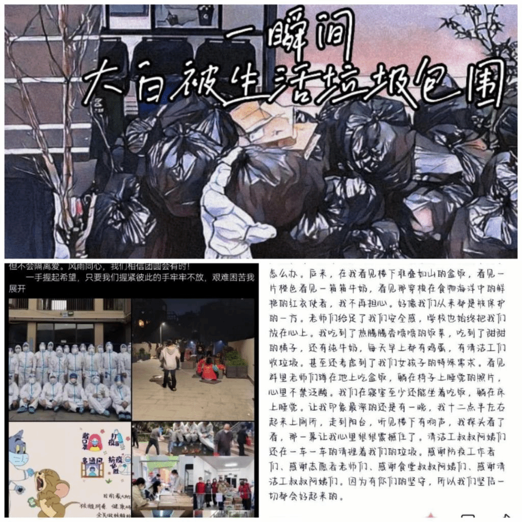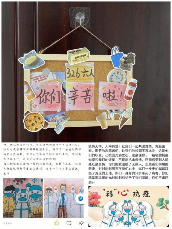 病魔无情人有情,祸害不力心生力。突如其来的疫情让学校陷入了疫情防控以来最艰难的时期,面对突如其来的疫情,学校立即启动疫情应急防控处置机制。我校綦江校区7000多名在校学生遍布山上山下,坐落在各个书院,全部学生封闭在寝室,一时间所有的问题的重担都压在了学校老师的身上。老师们自我请愿,闻令而动,同心携手共抗疫。正是因为有他们的的辛勤付出、配餐送餐、物资发放、了解封闭期间学生的困难与需求、及时疏导学生心理等工作的开展,才使得全员核酸检测、后勤保障、学生防疫情况摸排能够有序进行。作为在校学生,同学们纷纷对志愿者老师表示感谢,并用最诚挚的话语书写志愿者的辛苦,对他们报以最崇高的敬意以及最真挚的谢意。每一个人都在以自己的方式为疫情防控贡献力量,即使它只是一束微光,但汇聚在一起,便是不容忽视的。相信在大家的共同努力下,这场攻坚战的胜利指日可待。