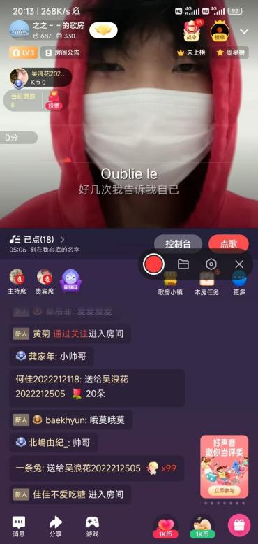 活动进行得十分融洽,即使是线上活动,但同学们的热情丝毫未减。听众们在歌房中时不时为亲情演唱的同学们送出礼品,用语言激励着演唱者,表达着对他们的欣赏之情。同样作为视听艺术的电影作品,音乐在里面发挥着举足轻重的作用,而音乐的加入让电影更加让观众更能产生共鸣,勾起他们内心的情感。音乐的加入使得电影艺术中的叙事画面有着独特的吸引力与不凡的魅力。
