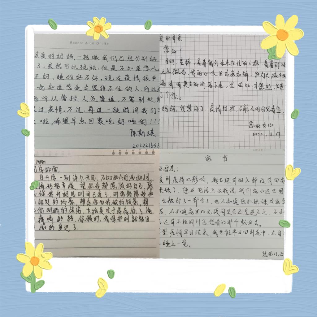 本次活动圆满结束了,同学们在此活动中流露出对她真挚的情感,将作为永久的回忆。纸短情长,彼此之间爱意是诉不尽的,那就用行动去证明吧!疫情总会过去,相信这一天不会太远。愿我们都能够安好,静待陌上花开的那天!