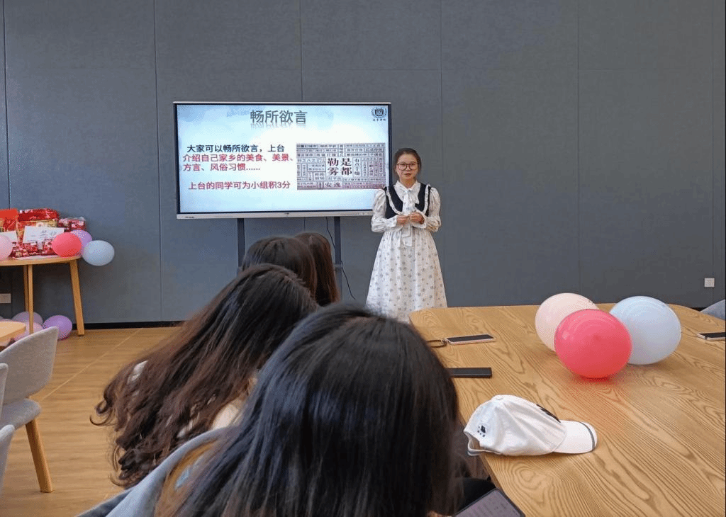 传承最美乡音,趣聊地方方言。为了让不同省市的同学更加真切地感受各地地方方言,领略不同地域的文化民俗,拉近彼此距离、促进彼此联系,共创多元文化相互碰撞、交融的远景大家庭,2022年11月25日15:00-17:00,远景学院社团管理委员会组织学院两个年级的32名同学,在瀛溪书院“很正式研讨室”举办了此次地域文化交流活动,远景学院人类学教师邓锦莹应邀出席。