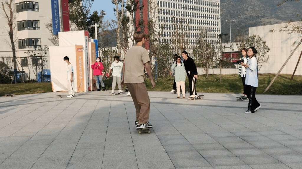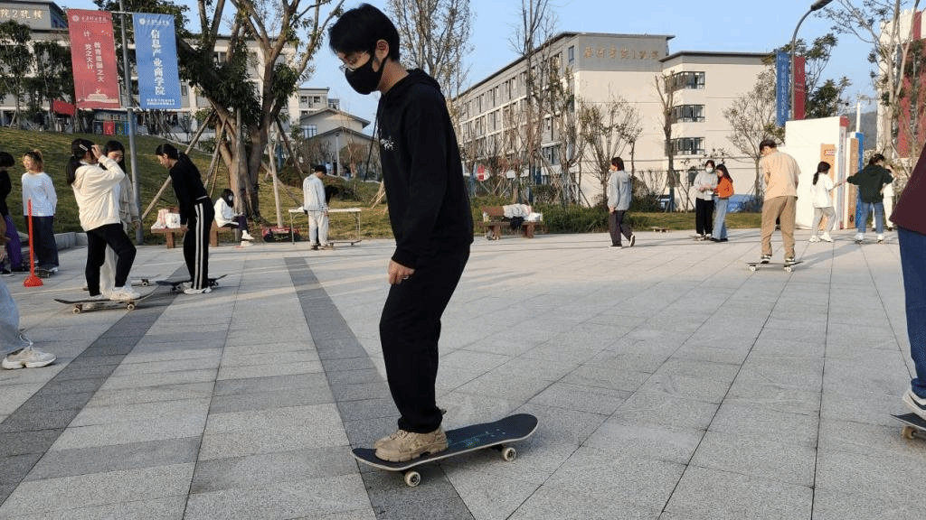 作为最受年轻人青睐的一项运动,在小老师讲解时,就有同学忍不住想要尝试。同学们在拿到滑板后,即使心中有些许畏惧,但是依然鼓起勇气在朋友的搀扶下踩上滑板,找寻那种追风的感觉。有的同学三五结伴,有的独自一人,但这并不会阻挡大家的热情。滑板社的小老师也耐心的为大家讲解关于滑板的技巧和注意事项,希望同学们在游戏过程中有一个较好的体验。