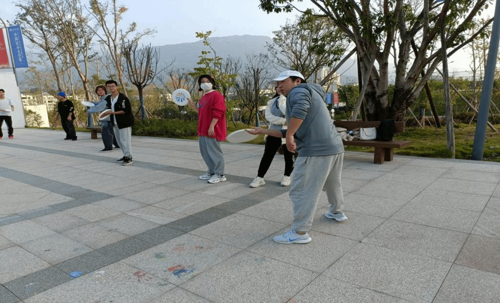 都说实践是检验真理的唯一标准,在科学理论的知识教授后,同学们对于动手实践跃跃欲试。活动负责人邀请了几位同学到广场中来,通过体验飞盘的掷盘和接盘,让同学们近距离的观察和了解飞盘这项运动,感受独属于飞盘的魅力,体会这只有在户外才能体验的快乐。