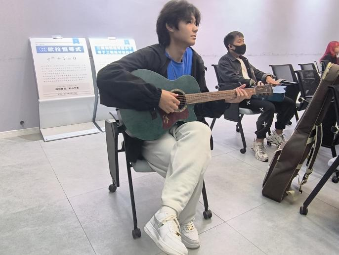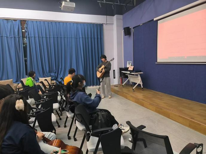 本着认真教学的态度,吉他交流会将在每两周的星期六进行开展。在本次吉他教学活动中,一群喜欢音乐的年轻人们在这里相聚。彼时,吉他成为了同学们交流心灵的工具。大家尽情用吉他释放内心的情感,感受音乐澎湃的韵律,诉说专属自己的故事。让同学们感受乐器带给心灵的熏陶。乐教于学的方式让课堂气氛活跃、轻松、充满活力,同学们对吉他的热情也极大限度的迸发出来。