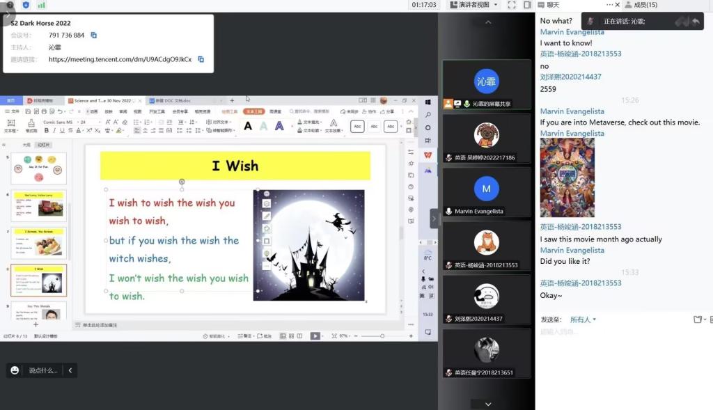 2022年11月30日周三下午2:30,养成计划之“黑马演说家”第二期,在腾讯会议上举行。本期演讲话题为Science & Technology (科学与技术)。话题看似富有挑战, 但在观看一段科技发明视频后,在会的同学们很快进入了演讲的状态。
