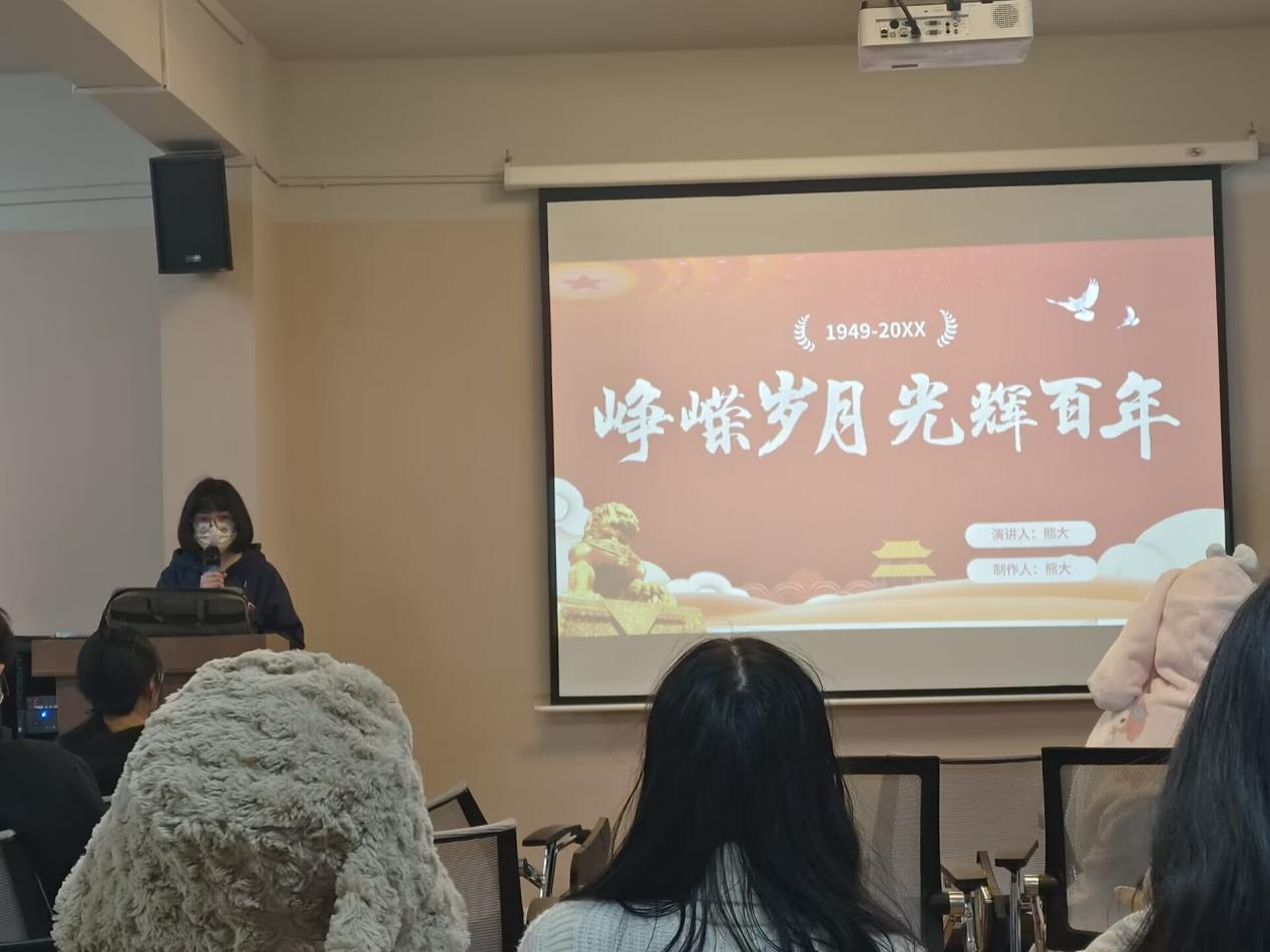 峥嵘岁月,光辉百年。毛蔓菁同学表示:“是毛泽东主席为中国的大好河山带来了第一份的曙光,是毛泽东主席为中国的山河带来了第一缕的星光璀璨......”她激情昂扬的演讲,让在座的同学深深的感受到祖国的繁荣发展,离不开先辈的贡献。作为身在红旗下,长在春风里的大学生,要深刻学习并积极弘扬先辈的红色精神,在中华大地上留下属于当代青年的足迹。