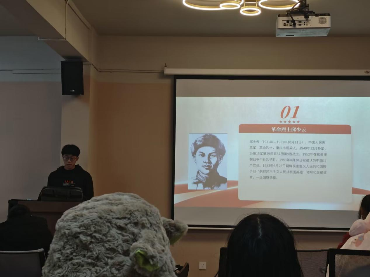 “缅怀红色历史,追忆峥嵘岁月”是当代大学生义不容辞的责任与但当,为弘扬以爱国主义为核心的民族精神,增强同学们的表达能力以及拓宽同学们的知识面。“四史”学习研究社发挥思想引领作用于12月2日晚上19:30在綦河书院3号楼小石潭多功能室开展“讲好英雄故事,传承红色基因”演讲活动,活动吸引了30多位同学参与。