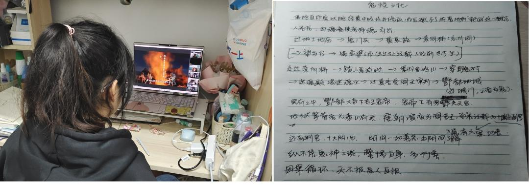 小时候谁不想成为孙悟空七十二变斩妖除魔呢?神鬼怪力是我国传统文化中不可缺少的一部分,反映了先人对自然的理解与幻想。巴渝文化社社长曾梦妍及副社长周印琦为给同学们科普鬼怪的相关知识,共同主持本次文会第二期——《中国妖怪录》。在会议伊始,社长针对本次文会介绍了活动开展的主要内容及其流程,并由副社长通过共享屏幕带领大家一起观看两个关于中国传统文化中的鬼怪文化故事。同学们在观看期间,纷纷拿出自己的笔记本,记录下视频中自己感兴趣的地方以及重点。在观看结束后,同学们也就自己的看法与观点进行阐述,热烈的讨论氛围,可以看出同学们对中化文化都有着浓浓的兴趣。