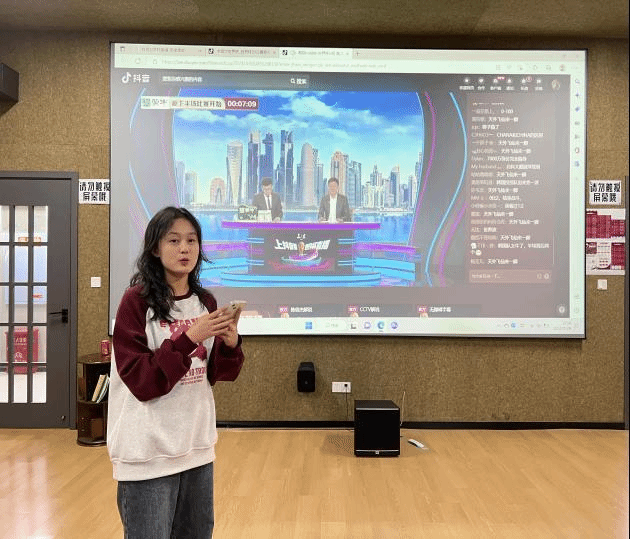 世界杯知识知多少?为丰富同学们对足球知识的了解,主持人在中场休息时间,紧紧围绕世界杯相关问题展开提问。张文海同学对“第一届世界杯什么时候举办,举办场地在哪?”倒背如流;唐诗益同学对“获得世界杯冠军数量最多的国家”了然于心;在场师生对“中国首次进入世界杯是第几届世界杯?”同声作答。“本届世界杯中的中国元素有哪些?”掀起了答题热潮,鲁塞尔体育馆外观、中国裁判马林,“京京”“四海”大熊猫,“小混沌皮”吉祥物,新能源客车等中国元素在世界杯的聚光灯下,展现着中国实力,增强了同学们的文化认同感。