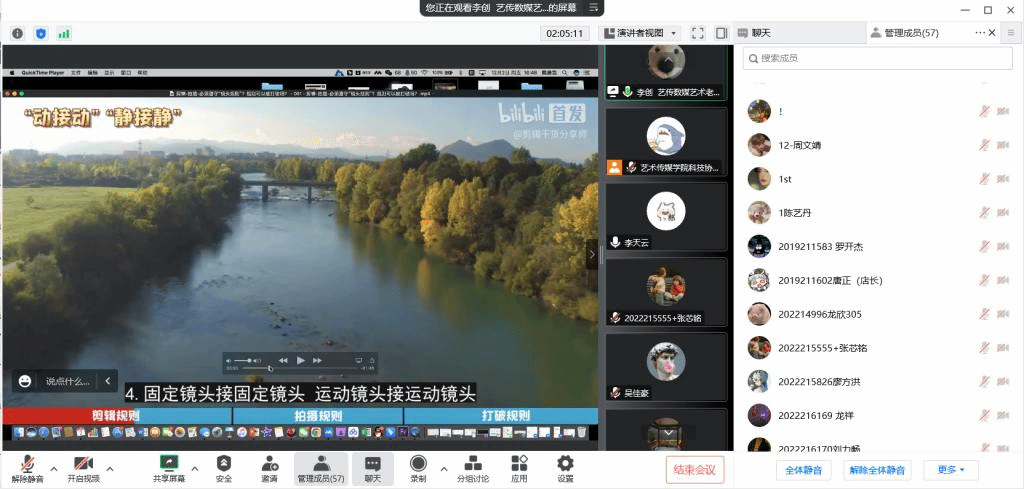 为提升我校学子综合审美素养,帮助学生群体进一步了解掌握后期剪辑知识。2022年12月2日,由重庆移通学院校学生会科技活动部主办、艺术传媒学院学生会科技协会承办的以“智慧影像,创享美好”为主题的PR软件讲座成功举办。本次活动以线上形式展开,面向全校师生,并邀请到艺术传媒学院李创老师作为主讲人,参与覆盖率达63人次。