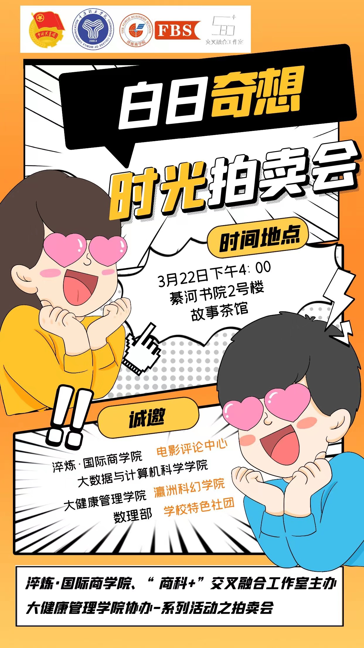 预热活动第三弹来啦!运动,是治愈一切的良药;艺术,是追求美丽的奋斗。为促进大学生个人价值培训、强身健体与专项技能的培养与开发,“商科+”交叉融合工作室从我校四位一体办学教育理念出发,将竞技体育和艺术修养有机结合,深化商科与多学科穿插融合发展。淬炼·国际商学院联合大健康管理学院,大数据与计算机科学学院,电影评论中心,瀛洲科幻学院,数理部以及多个社团于2023年3月22号在綦河书院二号楼东篱故事茶馆共同举办“白日奇想-时光拍卖会”。让我们拭目以待吧!上次介绍了拍卖会完满教育的社团活动与志愿服务板块的嘉宾,现在跟随我们的脚步把此次拍卖活动聚焦到竞技体育和艺术修养板块吧。本次拍卖会邀请到竞技体育板块的嘉宾:曾芮,刘忠政,郭建亭,叶昊博。艺术修养板块的嘉宾:傅鑫益,谢明月,邓丽。让我们以时光为桥,搭一段未知的缘分,结识另一个有趣的“你”。让我们的一个小时之约,镌刻奇思妙想的温柔记忆吧!