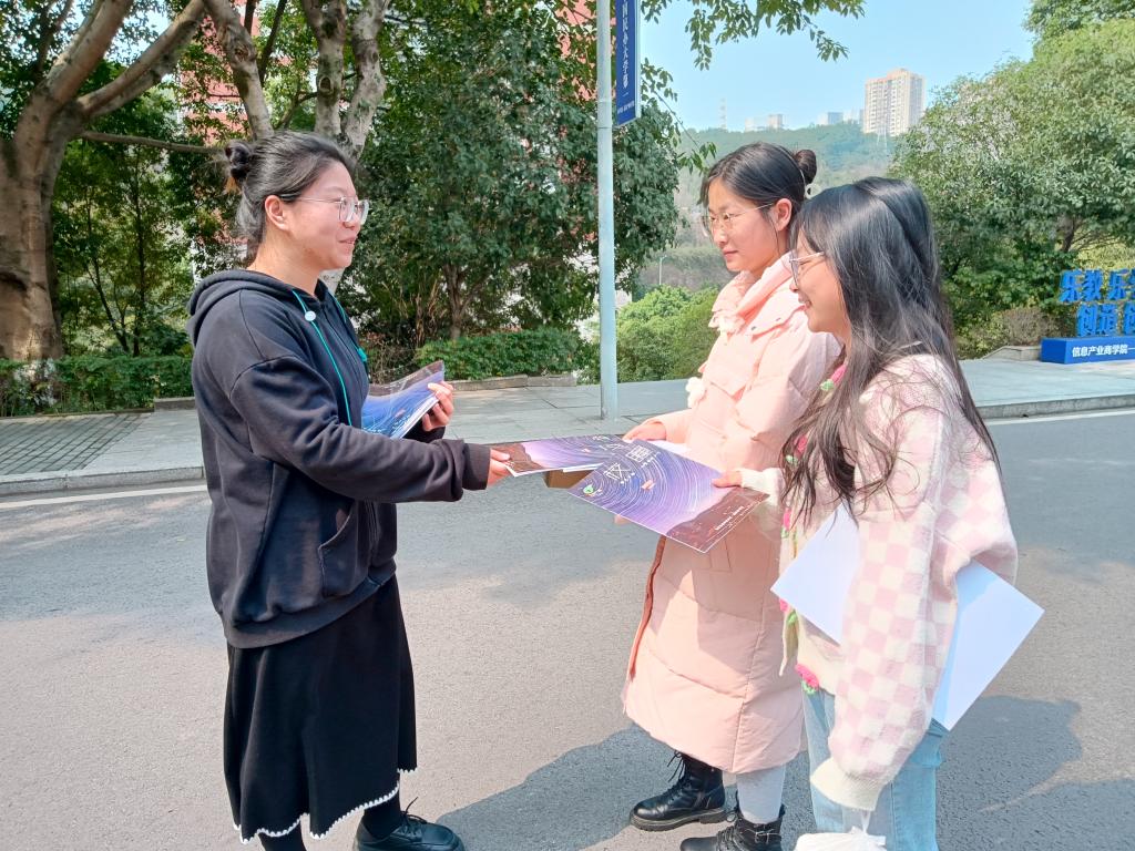 这是发放的最后一站,我们来到黄桷树广场。在广场上,我们早早支起帐篷,将《校瞳》整齐安放,走向来来往往的同学们耐心介绍,在我们的介绍声中,在同学们期待的眼神中,在我们递上《校瞳》的动作中,通过文创部全体成员的努力,我们于2月28日成功将《校瞳》发放完毕。每一本《校瞳》的发放,都包含着我们全体成员对促进全校师生与商科关系的满满期待。