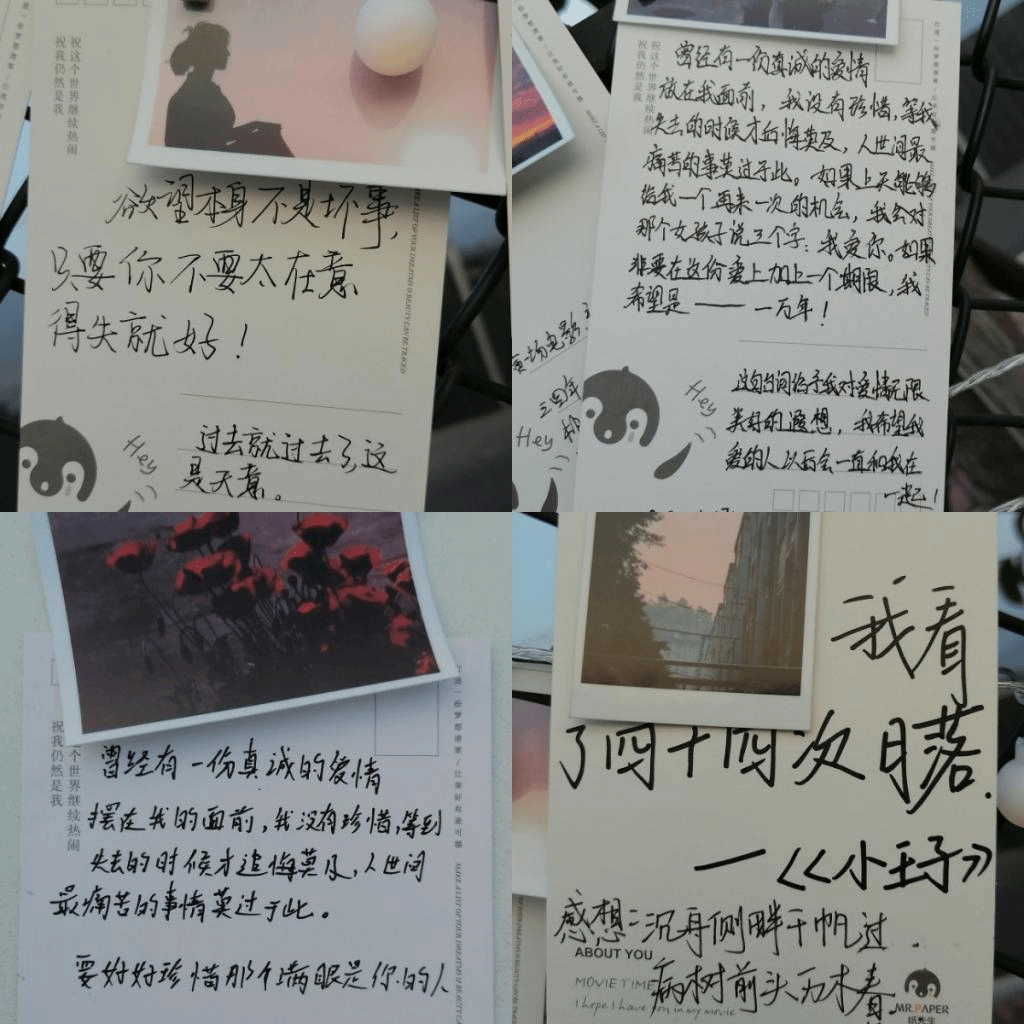 作品展示,不仅有作品本身含义的传递,还有观赏者的与之共鸣。同学们在观赏精美的照片与明信片后也写下了藏在记忆中的电影台词,以及想对电影说的隐秘絮语。简单的话语却有力的表达着对电影、对生活的情感态度。除此之外,更有老师们参与到活动中分享他们最喜欢的电影,师生的融合交流让活动现场充满温情。为了感谢同学与老师们的积极参与,电影协会特以“鲜花”为礼,回赠给可爱的移通学子和可敬的老师们!在寻找自己秘密的同时,同学们也有被其他的照片所感触。在找到属于自己的照片以后,同学们在明信片上写下了关于自己照片的光影秘密。最后,同学们完成了约定,留下了自己的光影秘密,带走了美丽的鲜花。而这又会成为一段美丽的光影秘密。或许在之前,它已经被电影所种下,又或许在之后,被某部电影重现。