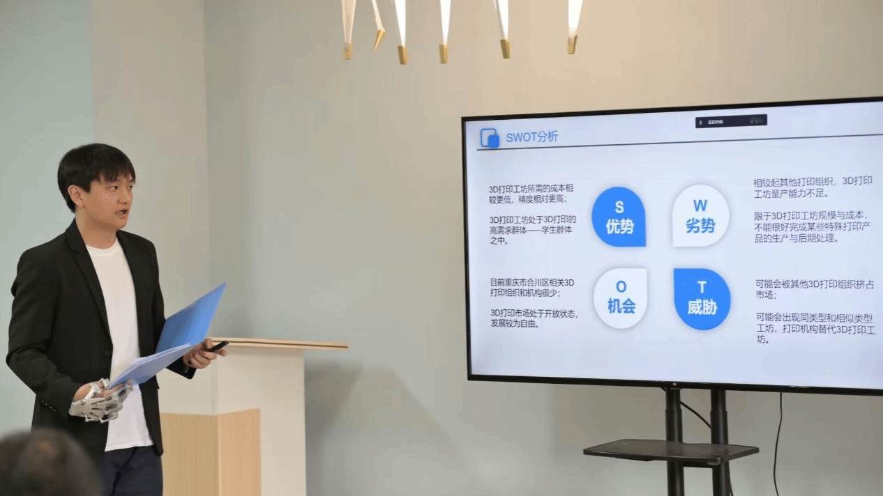 各参赛公开展示项目路演完毕后,评委老师姜馨怡为本次大赛进行总结点评,从选题的创意性、数据的可靠性、产品的可行性、调查的真实性等方面,既肯定了各参赛项目的亮点、优势,也客观指出了不足之处,提出了宝贵的优化建议,为各团队继续打磨和完善作品指明了方向,期待同学们在新征程中追求卓越、志存高远!