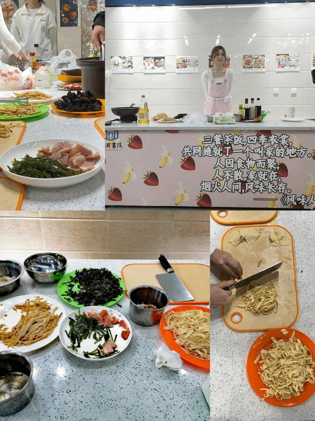 “移时三餐”美食綦趣坊因美食文化起兴,以移通师生兴趣为导向,驻綦河书院功能室“小厨·共享厨房”为阵地。美食佳肴教学,每期小班60人分组教学,构建精细化美食课程体系;采用理论公开课与实践体验课相结合的形式,从学到做,寓教于乐,引领移通师生们了解美食知识,爱上美食文化。