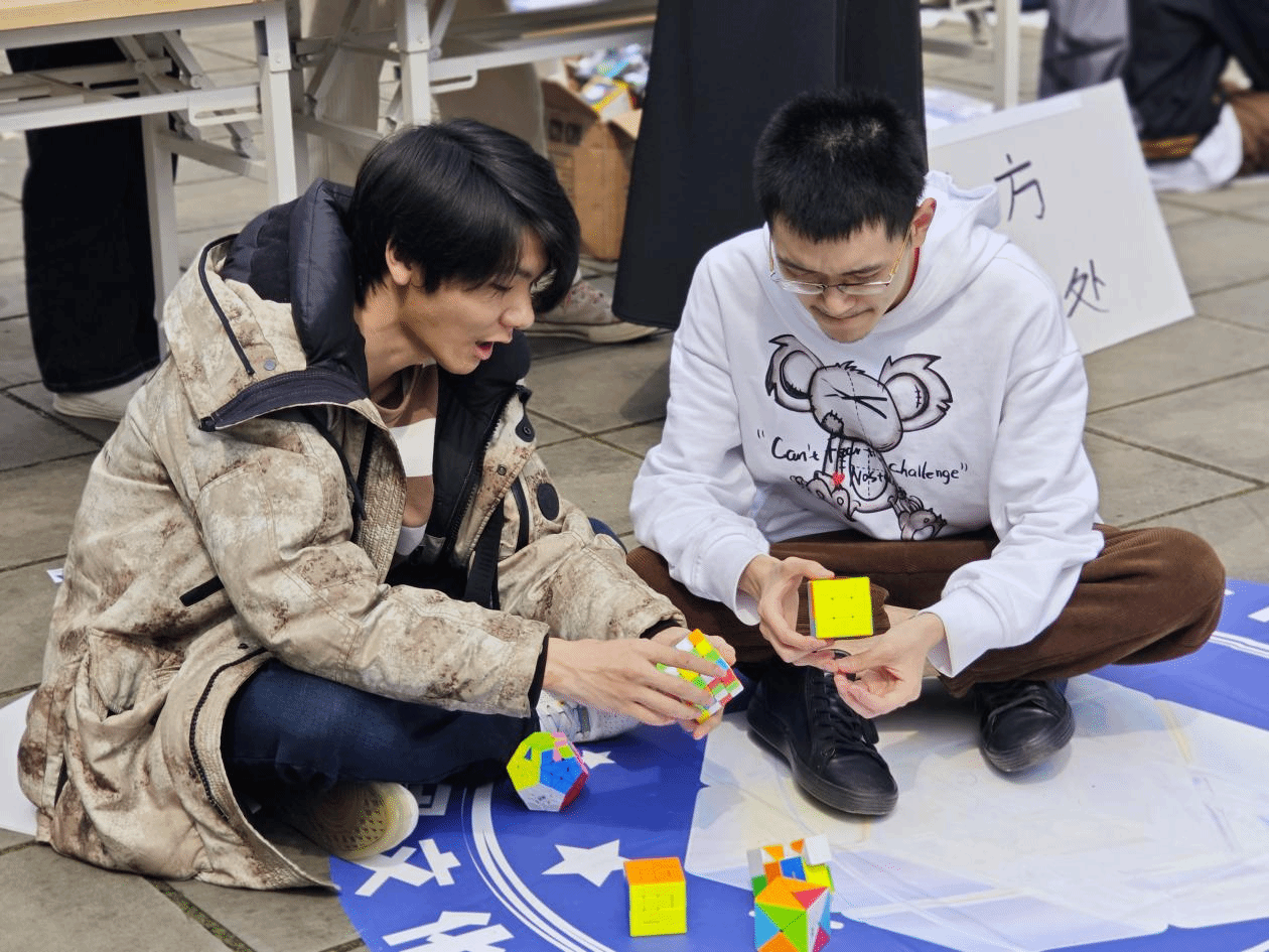 现场除了弥漫着紧张挑战的气息,也有温馨的一幕。魔方爱好者对魔方达人挑战的完成纷纷表示惊叹,魔方圈转变为“磁力圈”,大批魔方爱好者被吸引,开始加入到魔方的挑战中。并不擅长魔方的爱好者与魔方达人一起探讨魔方其中的奥妙,围圈分享魔方经验,从互不相识到熟络探讨,建立了神奇的友谊,以兴趣吸引到一群志同道合的朋友们。