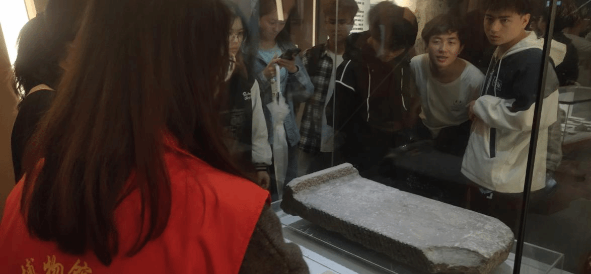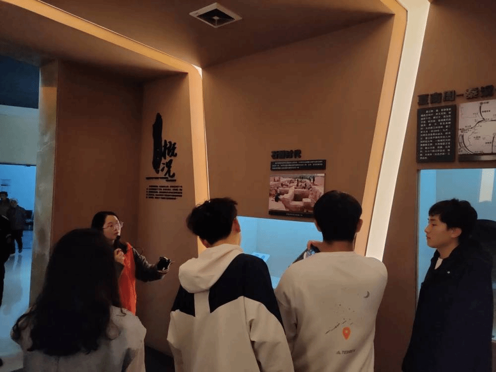 工作人员向大家介绍“在永安镇出土的一柄新石器时代的石斧,打通吹角坝出土的青铜铣和双耳铜釜......这些文物证明,新石器时代綦江地区内就有人类的活动。”在工作人员的讲解中,同学们都深深的感叹到文物身上的美好光辉和在历史长河中人类的文明传承。