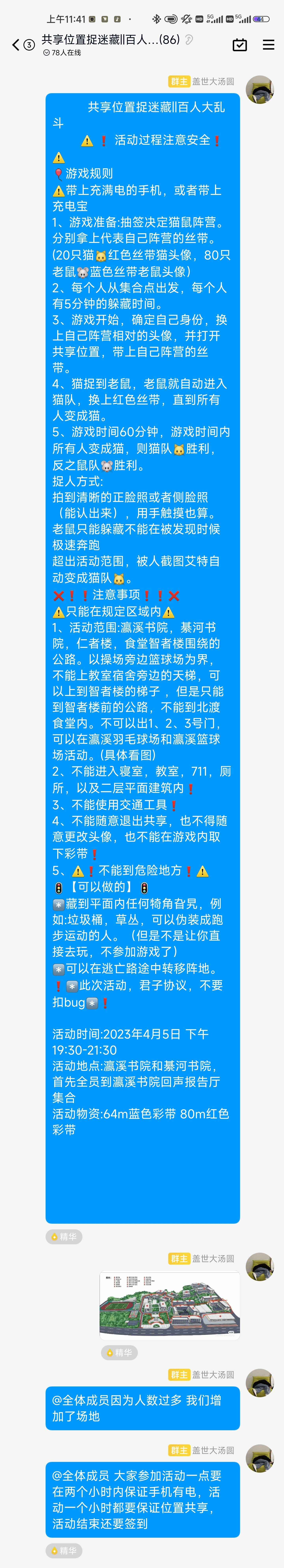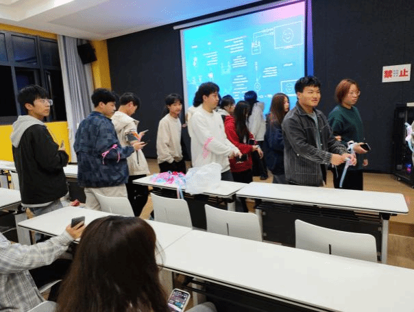 游戏开始后,同学们踌躇满志,一场猫鼠大战即将开始。“鼠”阵营有十分钟躲藏时间,时间一到就必须换上头像并将定位开启,手臂绑上特制丝带,就开始躲避猫猫们的捕捉。“猫”阵营则是从十分钟之后从活动室出发,换上头像后将定位打开,绑上特制红丝带,捕捉躲藏的鼠鼠们。