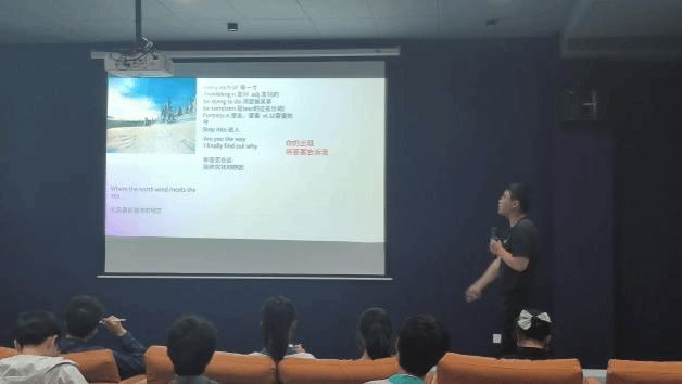 寻找最美声音,激发学习兴趣。为了调动大家学习英语积极的情绪,激发大家对英语的好奇心,使大家在英语学习中积极感受英语魅力并与其建立联系,以英文歌曲、影视剧和英文读物为兴趣点。4月14日19:00“精英之声”语言社于綦河书院二号楼A区银河·影音室举办了第一期英语成长计划系列活动。此次活动特邀外国语学院的章坚老师莅临指导。