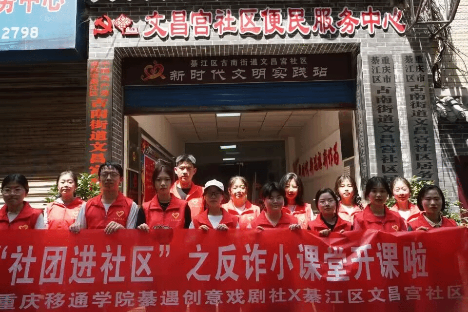 针对当下电信网络诈骗花样层出不穷的现象,4月16日下午,重庆移通学院綦遇创意戏剧社联动綦江区文昌宫社区,利用自身社团属性,通过剧目表演、反诈课堂、知识普及等方式在社区便民服务中心为老人和小朋友们联手打造了一场别开生面的防诈骗知识输出。