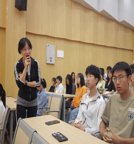 为了活跃气氛,锻炼同学们的表达能力和创作能力,苏瓷瓷老师要求现场同学根据影片开头来猜后续的故事进展,她说:“现在出来了一个老人,一个小孩,还有这个鳄鱼,以及一个企图自杀的女孩。当人物都到齐的时候,你们怎么编故事?大家可以相互讨论一下,看看哪位同学能够猜中,如果能猜中的话,你也是可以比肩金基德的天才。”