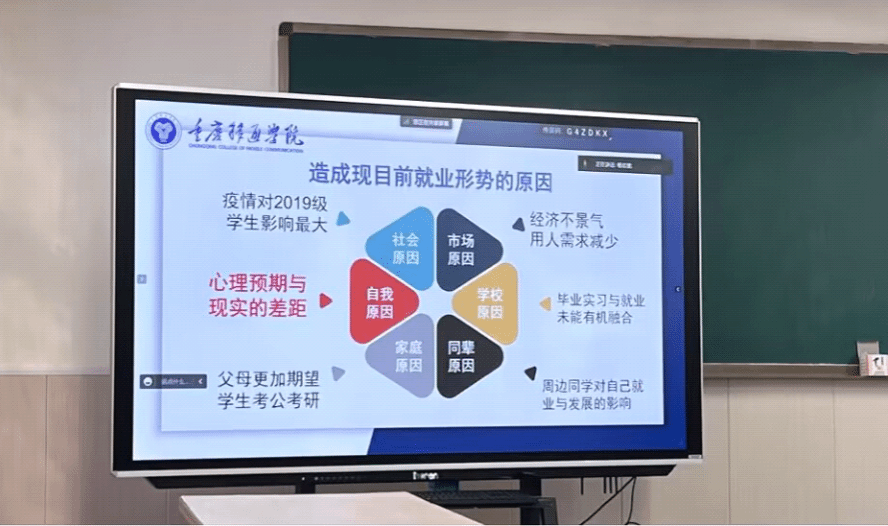 只有找到问题根源,才能彻底解决毕业生就业难题。李军院长从社会、市场、学校、家庭、同辈、自我六方面与学生进行探讨,着重强调:作为一个应届生,要将自己的才能在企业之中发挥出来,以价值引领就业。
