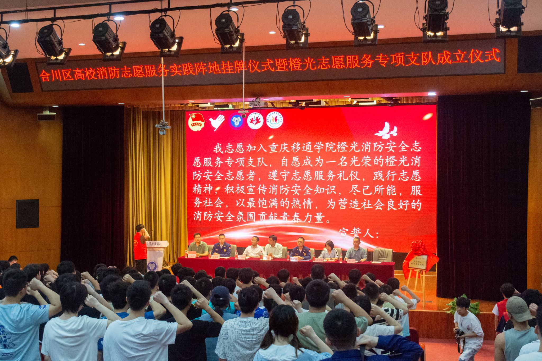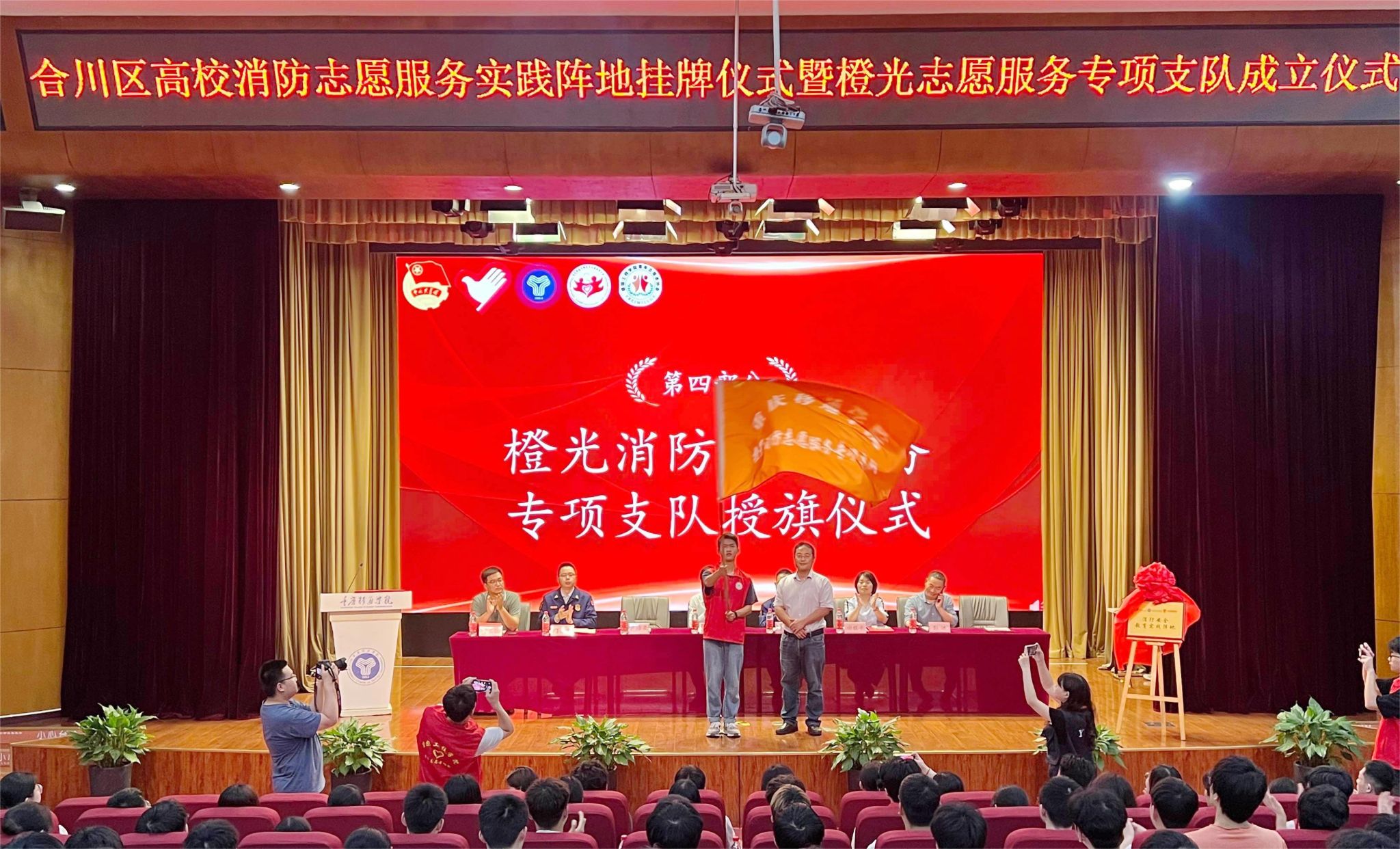本次挂牌我校的消防志愿服务阵地,是合川区内首个消防安全教育实践阵地。同时,我校的第110个支队——橙光消防志愿服务专项支队,也是合川区首个由高校青年志愿者组成的消防安全专项队伍。