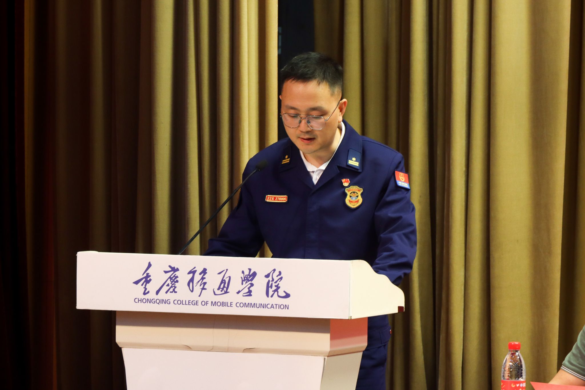 仪式上,校团委书记谢银平作橙光消防志愿服务专项支队介绍;合川区消防救援支队团委书记、副政治委员黄天来给予队伍殷殷嘱托和期望。