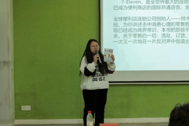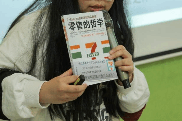 易鹏同学带来的《一往无前:雷军亲述小米热血10年》腰封设计更是令同学们深受感悟,他从设计创意、设计理念、设计意义、腰封展示四个环节突出小米公司十年文化、小米的使命与小米十年愿景和未来憧憬。简洁明了的设计出小米十年的一往无前。接下来江雪竹同学为大家带来《零售的哲学》腰封设计展示,她表明:这份作品采用了白灰渐变的一个底色,与零售的哲学这本书的底色相符合,书腰的正面的右上方用了711的一个logo。中间部分采用了3个问题,层层深入,让人了解这本书的内容,引起读者的兴趣,背后一面用了作者的一段话,让人了解作者的思想的深度 。