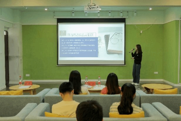 时光荏苒,稍纵即逝。最后由刘琳老师进行总结致辞,老师向各参赛选手带来的优秀腰封设计作品给予肯定的同时,也进一步从腰封来源与腰封设计要素两个方面对大家的答辩提出建议。刘琳老师说到腰封来源于日本,腰封设计要素是布局、主文案亮点、主文案、副文案、行动点、插图元素,并对此向大家进行科普。刘琳老师强调此次腰封设计大赛不仅是作品的一次展示,更是想通过这种方式让同学们明白“信息产业大咖传记阅读计划”的重要性。老师还积极呼吁同学们要自信地站在舞台上表现自己,敢于大胆创新,在创新这条路上走得更远更好。