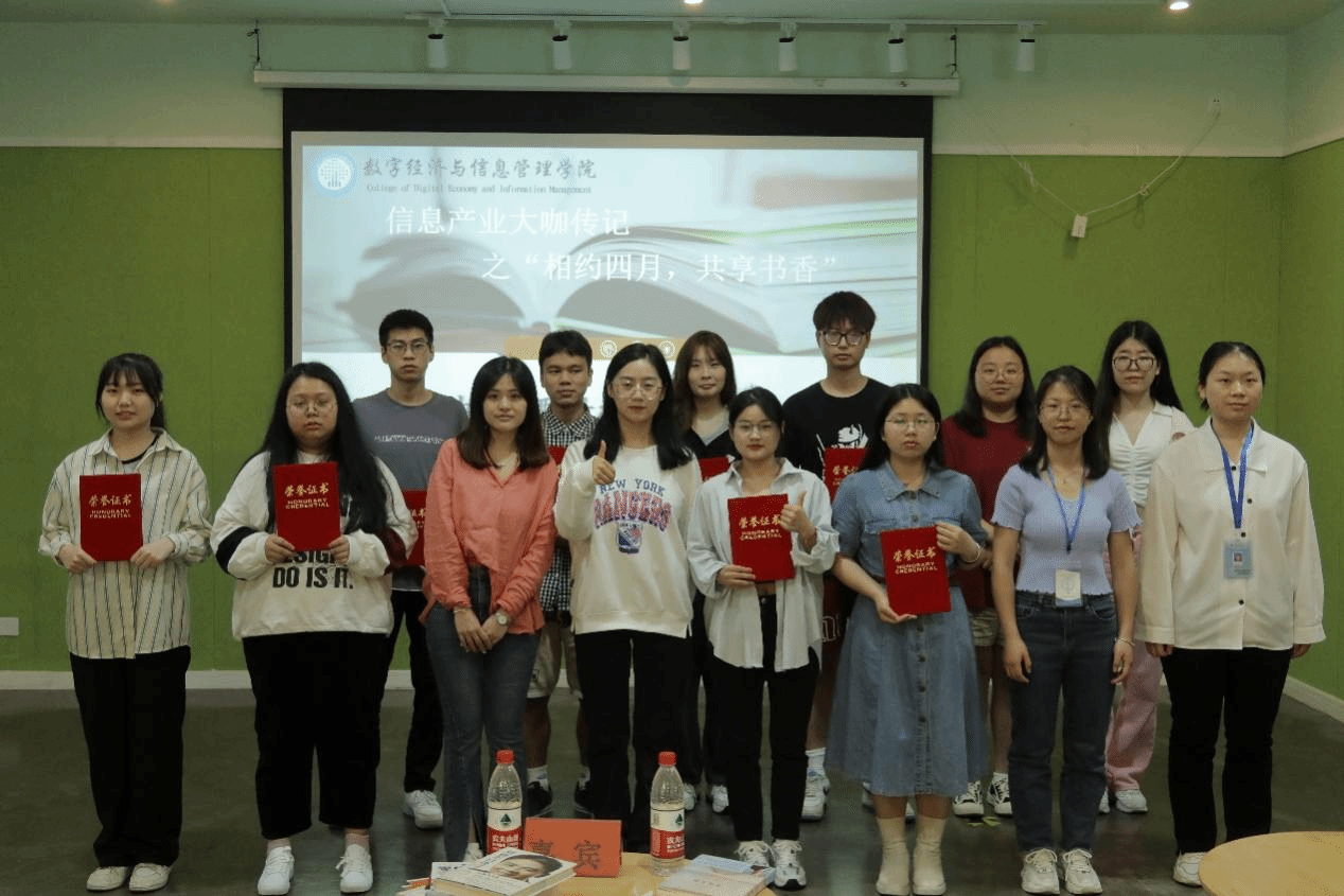 结合“4.23世界读书日”,为提升学生阅读水平,打造浓厚读书氛围,为让学生了解更多信息产业大咖人物、大咖思想,促使同学们在阅读中享受乐趣,发觉和挖掘自身潜能,形成高尚精神品质。数字经济与信息管理学院于2023年4月21日中午在双栀多功能影音成功举办以“相约四月,共享书香”为主题的书籍腰封设计比赛,本次活动有幸邀请到数字经济与信息管理学院社团活动板块指导老师刘琳老师、吴丽玉老师作为嘉宾出席。