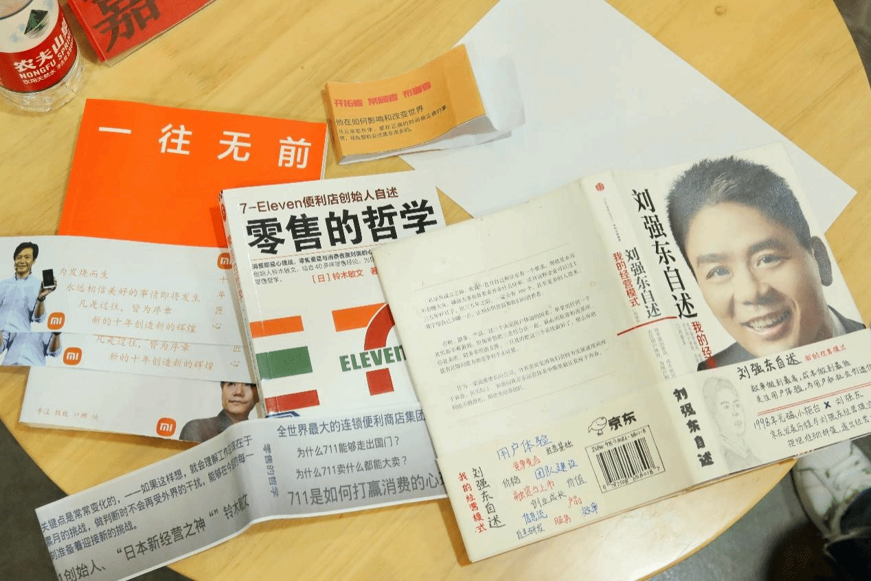 以书为伴,清静恬淡;以书为友,净化身心。下面由叶洪润同学带来《刘强东自述》腰封设计展示,通过简单的绘画制作,给读者呈现出刘强东独特的经营模式,腰封表明:他是新一代商界领袖,他用事实证明,只有拼搏才能创造价值!下面由李敏同学、石运杰同学带来《刘强东崛起的智慧》腰封展示,他们都以简约的设计风格,让读者领略到刘强东不同于常人的商业信念、思想和策略,以及他和团队非凡的创新能力。