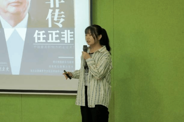 接下来,由马心铭同学带来他的腰封设计《松下幸之助全传》,她从人物介绍、主要内容、推荐理由、设计想法四个角度进行答辩,她的腰封展示不仅记录了松下幸之助的成功经验,还阐述他的思想和创新的观念,点明这是一本人生传奇和经营智慧的书。紧接着,由周雅迪同学带来《任正非传》腰封设计答辩,她分别从人物介绍、书籍介绍、腰封设计三个方面,在书籍封面原有的人像基础上,加入领结设计这一独特的因素。向读者直观表明这本书的主要内容、经典语句与关键词。