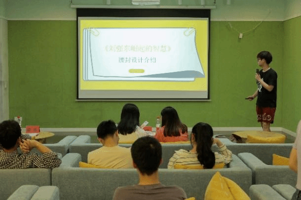 小小书腰,不仅是图书的一件美丽衣裳,更是书本面向读者的自我介绍,是书本重要的一部分。本次活动采取线上投票方式与线下答辩形式进行。经过初赛作品的一一筛选,共有8部优秀作品脱颖而出,晋级决赛。在决赛现场,各参赛者展示其在大咖阅读方面的腰封设计成果,他们主要从制作背景、设计方式、腰封展示、心得收获等方面为现场评委观众进行通俗易懂的解释与说明。