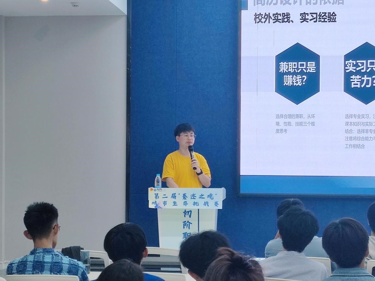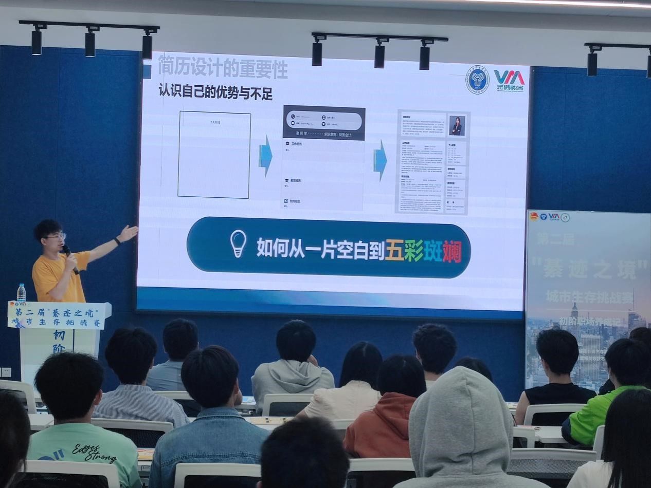 为让挑战者在经历城市生存历险记后更加真实地体验到职场生活的不易,并且进一步获得初入职场的经验,校学生会外联部携手就创中心,在綦江万达广场打造出一场真人职场体验秀,让同学们能够更加真实地体会职场的“风云变幻”。本次活动邀请到就创导师库导师周俊老师担任“綦迹冲刺班”指导老师,针对挑战者们进行职场内容专项培训,带领挑战者们认识简历设计的重要性,将校内学习情况和社会实践经验融会贯通,将自己从业的宝贵经验向挑战者们倾囊相授。